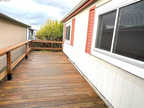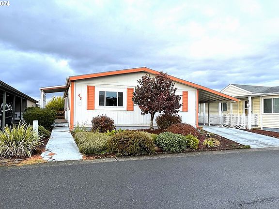 This Light & Bright home is MOVE IN ready, New carpets, new life time Windows, new toilets and fixtures, new paint. Beautifully maintained MH Park. Great room with high ceilings. Two spacious Bedrooms, 2 Bathrooms, Spacious deck for BBQing, relaxing on, or enjoying time with your guests & neighbors. Covered parking. Storage, & more. Additional parking in driveway and common area.Park is 55 +Lease space is $1045. & .Water, sewer & Garbage $72.21. Great price for this home, and this is a low cost for water, sewer & garbage.