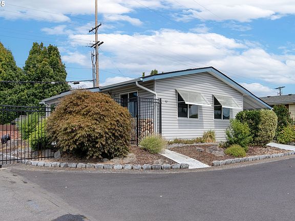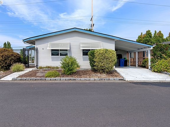 MANUFACTURED HOME IN 55+ COMMUNITY!Well-maintained 2 bedroom, 2 bathroom home with 1,034 sqft, built in 1986. Enjoy the inviting covered front porch and step inside to a spacious living room with high ceilings, open to the dining area featuring built-in cabinetry. The kitchen comes equipped with a refrigerator, dishwasher and microwave. The primary suite offers a walk-in closet and an attached bath with a walk-in shower. Recent updates include a new HVAC system and fresh interior paint. Located in a well-kept park, perfect for relaxed 55+ living. Buyer must be approved by the park. Space rent is $1045 + $72.21 for water, sewer, garbage.