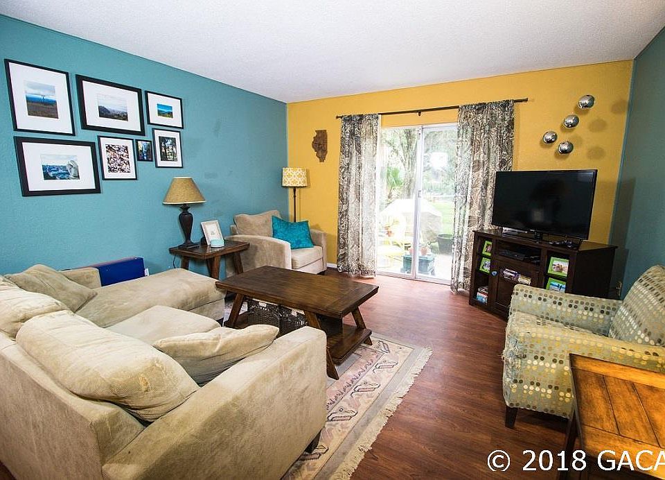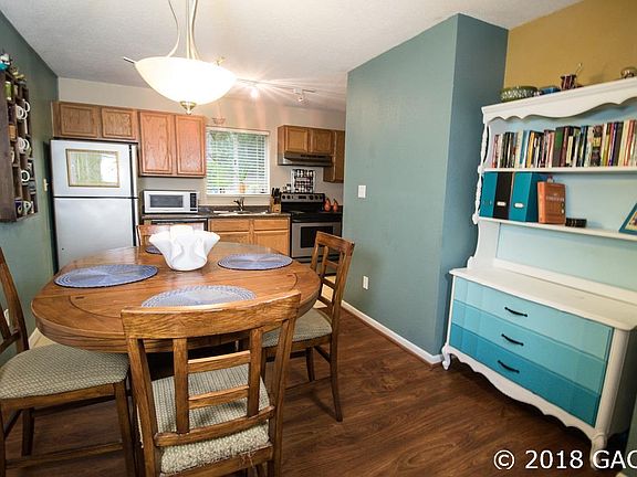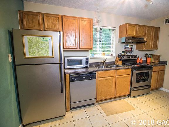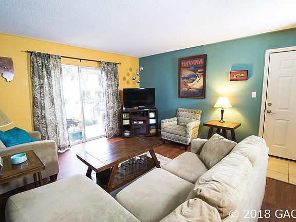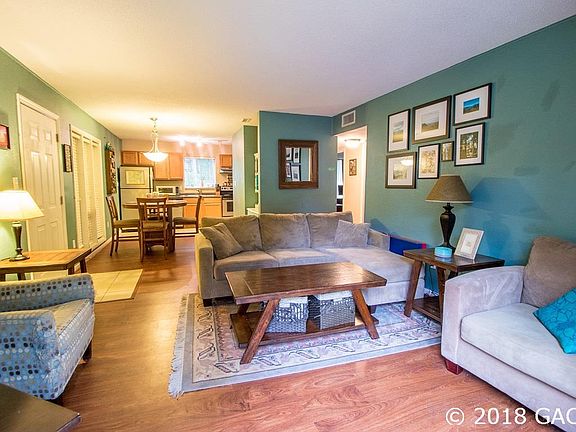 Beautiful 2 bedroom/2 bath condo with updated kitchen and baths. Stainless steel appliances in the kitchen and spacious dining area, great room, and back patio. The floors are highlighted by gorgeous laminate, vinyl plank, and tile. Washer and dryer included. The community has a pool, clubhouse, exercise room, and tennis courts. Less than 2 miles to UF. Walk to shopping, dining, and movie theatre. $1000 credit toward paint with full price offer.
