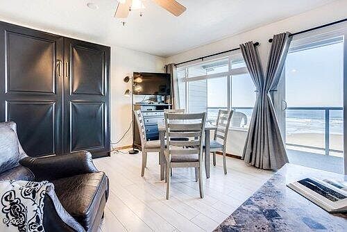 OCEANFRONT. Highly sought after gated community condo! Currently a successful vacation rental with transferable STR license. Direct beach access in the popular Nye Beach District with easy walking to restaurants, shops, and activities. Major exterior renovation completed in 2021. Upgraded granite in kitchen, unit is fully furnished, turn key and well maintained, laundry in unit. This rare find oceanfront condo is a must see with breathtaking views!