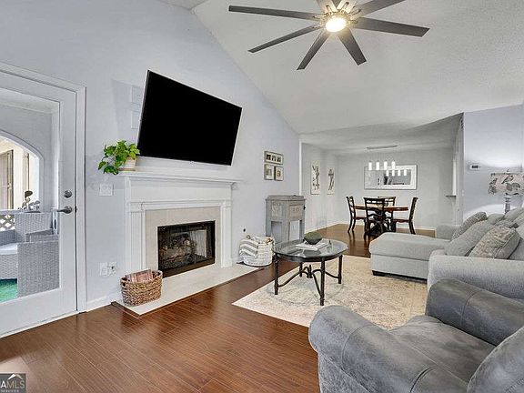 Welcome to this beautifully maintained, move-in ready single-level condo offering 2 spacious bedrooms and 2 full bathrooms-Perfectly situated just minutes from The Forum and Historic Norcross-and only a short stroll to Life Time Athletic Club and Triangle Park-this home offers the best of convenience and serenity, tucked away in a peaceful, wooded enclave that feels like a private retreat. Inside, you're welcomed by a bright, open foyer that flows into a large living room with fireplace, which effortlessly extends into a screened in porch with tranquil views of lush, established greenery. The neutral white and gray palette throughout complements the sleek stainless steel appliances and durable stone countertops in the kitchen. A generous dining area and plentiful cabinet and counter space make this home perfect for everyday living or entertaining. The separate laundry room just off the kitchen adds extra convenience.The primary suite boasts a large walk-in closet and a private en suite with dual vanities and a tub/shower combo. The second full bath features a tub/shower combo, perfect for guests or a roommate setup. Located in Peachtree Forest Plantation, a serene and well-kept community of just 80 units, residents enjoy amenities like a pool, well-lit walkways, ample guest parking, and meticulously landscaped grounds. HOA dues include water, trash, and exterior maintenance. Love to explore? Historic Norcross is just 3 miles away, and several parks offering walking trails, access to the Chattahoochee River, and ball fields are all within 4 miles of your new home. When you're ready for shopping or dining out, Peachtree Corners Town Center and The Forum are just around the corner
