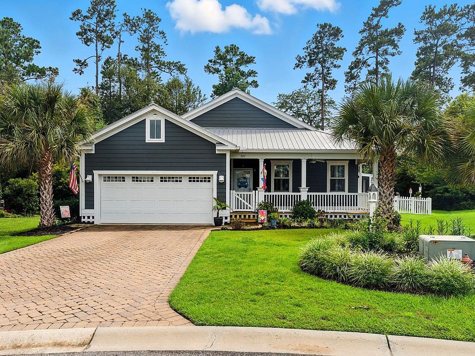 Absolutely adorable Lowcountry Cottage style home with many upgrades and desirable features. Metal Roof, Tankless water heater, Cul-de-sac lot, Whole house generator, sprinkler system, huge enlarged screen porch and rear patio updated and enlarged in 2023, granite countertops, luxury vinyl floors and tile and the list goes on. Home has 3 nice bedrooms, great master suite and bath, 2-car garage with attic storage, and more. The Oak Hampton neighborhood is part of the Prince Creek area with shopping, grocery, and restaurants nearby and only 3.7 miles from the famous Murrells Inlet Boardwalk with restaurants and entertainment galore. Go see this one folks, its in a great lifestyle community and may just be the perfect home for you.