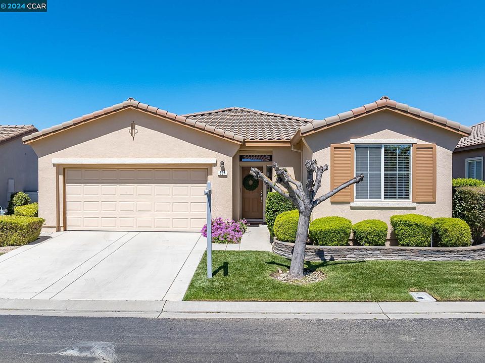 This beautiful Belmont model in Trilogy's 55+ community, is full of wonderful upgraded touches. With 2 bedrooms, 2 bathrooms, 1,767 sqft this home is a great blend or comfort and elegance with access to exclusive amenities. Walking inside, you are greeted by the beautiful hardwood flooring and high ceilings. The spacious living room with cozy fireplace, beautiful oversized fan, and surround sound speaker system, over looks the stunning fully updated kitchen. From the beautiful cabinetry, granite countertops, stainless one basin sink, and beautiful details- this kitchen is ready for you to enjoy. The formal dining room is filled with natural light and perfect for those holiday dinners. The spacious primary has it's own private slider and patio area, with an en-suite with dual sinks and walk in closet. The backyard has covered patio, full fencing, low maintenance landscape with auto sprinklers. Addtl highlights include: 2yr old HVAC, fresh exterior paint, insta-hot in kitchen, nest thermostat, and sun screens at living room/dining room for energy savings. Beyond this wonderful home, the complex at Trilogy offers so many amazing amenities, perfect for all your interests! From social events, clubs, classes, indoor pool and gym, plus golfing- it's an ideal location for active adults.