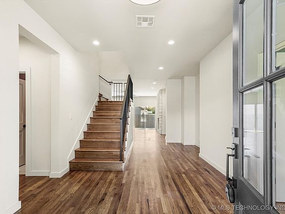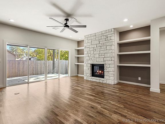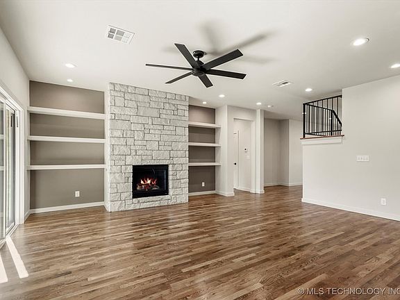 New construction beauty just a few short blocks to the vibrant Rose District in Broken Arrow! Enjoy all it offers including its charming shopping, excellent dining, entertainment, and summer farmers markets. Broken Arrow statistically has a low crime rate and Money Magazine included it in its top 100 places to live in America. This home has great curb-appeal with its full brick exterior. You might think it has just a 2-car garage from the front, but it is an over-sized tandem 3-car with plenty of room for a workbench or hobbies. Beveled glass in the front door welcomes you into this lovely home with 9 foot ceilings m/l downstairs. Warm hardwood floors are abundant from the front entry hall and carry into the office/5th bedroom, living room, kitchen, dining area, primary bedroom and up the staircase to the 2nd floor hallway and bonus space. Meal prep or entertaining will be a breeze in the open kitchen. It is well appointed with stainless steel GE appliances, including a 5 burner gas cooktop, and a large center island with room for 4 bar stools. The living room has a handsome stone fireplace flanked by floating shelves and a wall of windows/sliding doors to the spacious patio with a vaulted cover. It has an eastern exposure so you, and your guests, will be shaded from the evening sun! And there is a patio extension with power for a hot tub. Grab your beverage and soak your stress away. The primary bedroom suite is on the 1st floor with a spa like retreat bathroom. It has double sinks, a huge shower, a separate soaking tub, and a private water closet. Upstairs are 3 more bedrooms, a hall bathroom with 2 sinks, and a large attic expansion area! With a spacious utility room, 2 pantries, a tankless water heater, full privacy fence, and spray foam insulation this home is ready for you to make it yours. Oh, did I mention it is less than 3 miles to the new Trader Joe's in Broken Arrow?