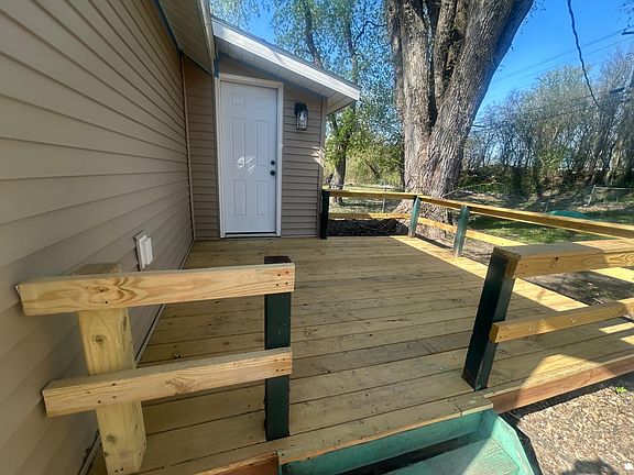 If you're looking for an affordable, completely move-in-ready home, this is it! This 2-bedroom, 1-bath home has been completely remodeled with all new electrical, plumbing, drywall, paint, new furnace, all new windows, Vinyl siding and more! Open concept with vaulted ceilings in the living area and a small deck off the back of the home. Solid surface flooring throughout. Off street parking plus a detached garage on large, partially fenced lot. Priced to sell at $119,900! Owner/agent
