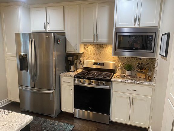 Beautiful Interior and very current finishes. Hardwood floors, plantation shutters, crown molding, gorgeous tile work and designer level granite. The garage has the nice speckled painted floors. Sellers purchased this unit with interior not completed. So they did really nice finishes and appliances. Primary has heated tile floors and instant hot water. Kitchen has gas stove, granite on backsplash, HUGE black Island with storage on both sides. Lots of roll out cabinets. Garage seems really deep. Large patio with seat wall surrounding it. interior completed 2020.