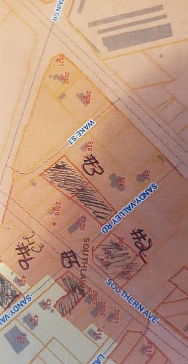 Road frontage on Sandy Valley and on Wake Street. Land beside Church on Sandy Valley. Property is 507 Sandy Valley 0426-70-8730 and 0426-70-7527 on Wake street. Property runs down beside the church