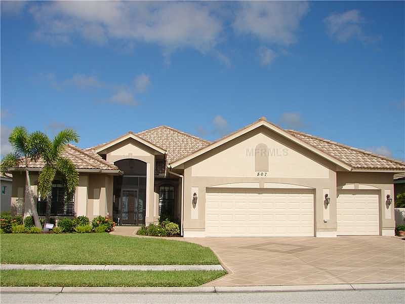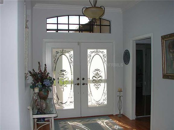 Enjoy amazing sunsets over a spectacular LAKE VIEW in this CUSTOM BUILT J&J HOME! Double entry doors lead into a light and spacious great room with tray ceiling, crown molding and a wall of sliding glass doors opening to a gorgeous view of the lake and golf course! The dining room has custom built-in cabinetry and mirror to reflect light and view. In the kitchen you will find upgraded stainless steel appliances, tons of storage and counter space,white raised panel cabinetry with exquisite "Blue Pearl" granite counters! Stand at the kitchen sink and enjoy the lake view through the large aquarium window- a generous breakfast area is also positioned with a large sunny window- you will love cooking and entertaining in this lovely, open kitchen!The laundry room with utility sink and storage closet and the half bath are c located off the kitchen,and the 3 CAR GARAGE with workbench area is accessed from the laundry room.Your master bedroom overlooks the lake with a wall of windows and a sliding glass door to access the lanai. The master bath features dual sinks, a soaking tub and a large walk in shower. The second bedroom is also generously sized and has two closets plus extra built in storage. The third bedroom is being used as an office and has a built in desk and storage cabinets as well as a clothes closet! The large lanai has been fitted with a retractable awning to shield the sun, when necessary.Security system, surround sound and hurricane shutters are included in this fabulous home.