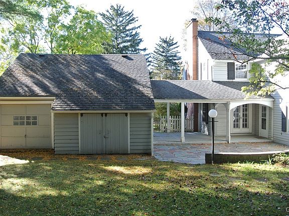 Lovely stone patio. Breezeway that leads to a 2 garage with a rear attached shed. and a wooded backyard. This home will need some updating. Full dry basement