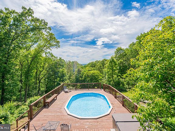 Amazing VIEWS from every room! Spacious 4 bedroom contemporary home with updates throughout three levels of finished living space on over 2+ ACRES! Entertaining easily flows from the light and bright open living room with cathedral ceilings & propane fireplace, to the spacious Kitchen and Dining rooms with expansive windows, PLUS family room, and lovely 2 story all-season sunroom. Refinished hardwood floors and fresh paint throughout, new carpet on lower level, modern baths, new iron handrails, new modern lighting, dual zone efficient heating/cooling. The Primary Bedroom with en-suite and walk-in closet, has the best view of all! Finished walk-out lower level with half bath, plus TONS or storage and workshop area. Enjoy the outdoor privacy and stunning sunrises & sunsets from your multi-tier deck, hot tub and built-in pool, floral landscaping and wildlife watching, garden and fenced yard area perfect for pets and play area. Circular driveway, 3 car garage, and RV parking, has plenty of parking for all your accessories in a quiet cul-de-sac bordering acres of community property. You'll have to see it to believe it! Ask how to receive a $3,000 lender credit towards closing costs or lowering your interest rate!