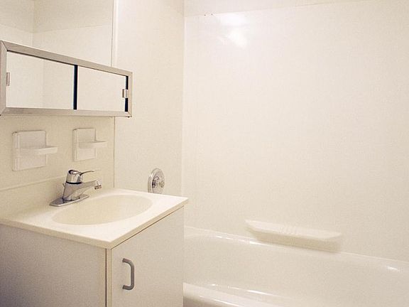 First-floor studio located in a contemporary apartment building with wall-to-wall carpet; wall-unit air conditioning; modern kitchen with refrigerator and range; ample coin-operated laundry facilities in building; off-street parking available for an additional fee. Resident is responsible for electric. Heat is included in the rent. Off-street, uncovered parking: $50.00/month; Garages (where available): $115.00/month