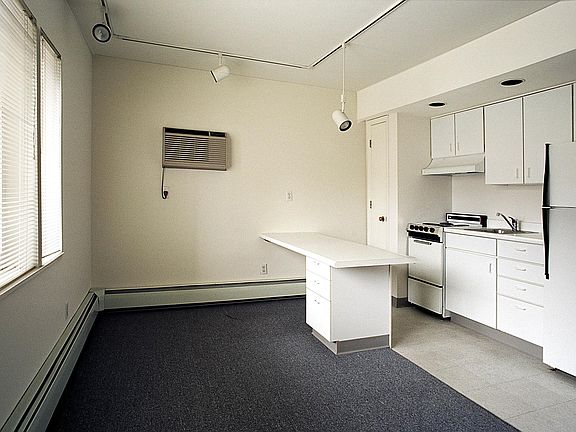 Second-floor residence located in a contemporary apartment building with wall-to-wall carpet; wall-unit air conditioning; modern kitchen with refrigerator and range; ample coin-operated laundry facilities in building; off-street parking available for an additional fee. Resident is responsible for electric. Heat is included in the rent.