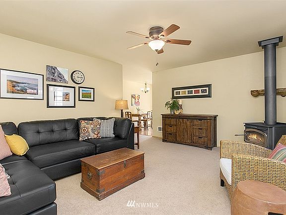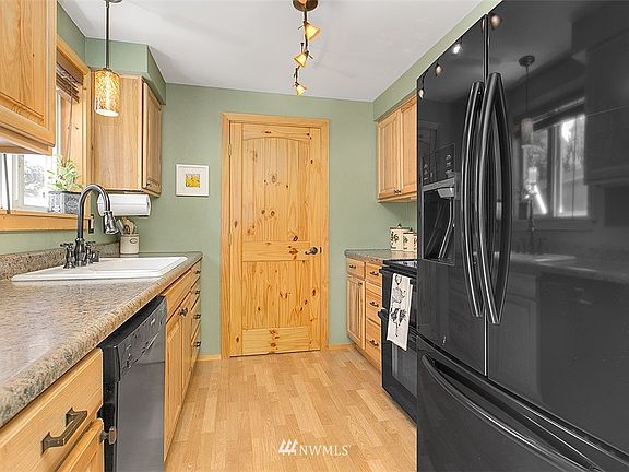 Welcome home to this adorable rambler on a cul-de-sac. The tastefully updated kitchen includes newer appliances with stunning alder cabinets and plenty of counter space. The living room boasts a cozy wood burning fireplace for those chilly evenings! Enjoy the spacious backyard with a wonderful cedar outbuilding, concrete patio, Chicken coop, a wood shed, and space for RV parking.