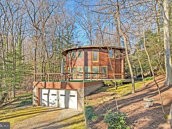 Welcome home to this custom built, one of a kind home in sought after Palisades on the Severn! Just a short block to Smith's marina and community amenities sits this wooded wonderland- a "Circular Home" nestled in the trees with water views to the Severn River. Spacious home with nearly 3,000 square feet of living space features a unique design custom built in 1986. Home features 3 bedrooms with 3 full and 1 half bathrooms, 2 car garage, rooftop deck & open concept main living area with few walls for a truly open feeling. Walls of windows bring the outdoors in. Entertain throughout your main level with living room, dining room & kitchen all open to one another plus a half bathroom, ample storage and an open staircase to the upper level. Thoughtfully designed with built ins throughout and a cozy fireplace to enjoy cold winter nights. Travel up the stairs to the bedroom level where you can enjoy a spacious primary suite complete with custom closet and private en suite bathroom. A second bedroom and second full bathroom plus generous loft space perfect for a home office, studio or playroom complete this level. Lower level features a third bedroom suite with separate entrance making it a perfect in-law or guest suite. Third full bathroom, laundry, ample storage, sitting area plus garage access all with plenty of windows and tall ceilings. Hardwood and tiled flooring throughout. Wood accent doors and trim work. Private setting on nearly 3/4 acre lot- among the largest in the area. Public water! Hot tub conveys. Easy access to major commuter routes. Close to shopping, dining & entertainment. Schedule your private tour today!
