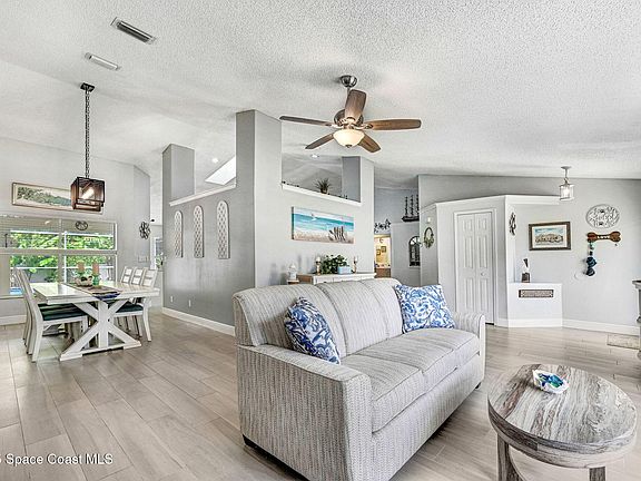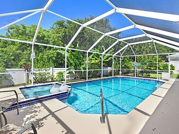 LOOK NO MORE!! Come see this Concrete Block POOL Home in the highly sought-after Pineda Crossing community! Major updates include Roof 2025, A/C 2024, and Water Heater 2019! Step inside to find volume ceilings, decorative alcoves, and an open, spacious floor plan—perfect for modern living. NEW tile flooring runs throughout for easy maintenance and style. The updated kitchen features quartz countertops, stainless steel appliances, and plenty of cabinetry for storage and function. The primary suite features a walk-in closet, new vanities, a beautifully remodeled shower, and a large linen/storage closet. Step outside to your own private oasis! Enjoy a large screened SALTWATER, HEATED pool. Pool area is ideal for relaxing or entertaining, complete with updated pool equipment (2024) and a fully FENCED backyard for privacy. LOW HOA and a prime location close to shopping, dining, top-rated schools, Patrick Space Force Base, and the BEACH! CALL TODAY!!