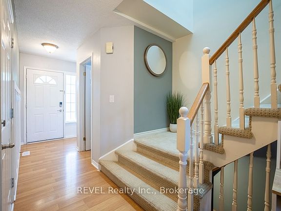 Looking for your next move? Consider this your winning play! Welcome to Pine Meadows, one of Niagara Falls most desirable and well-maintained condo communities. This charming 3-bedroom, 2.5-bath townhouse with attached garage and private driveway offers the perfect blend of comfort, convenience, and low-maintenance living, all in a central location close to shopping, dining, schools, and amenities. The bright and inviting main floor features a spacious living room with a cozy gas fireplace, an eat-in kitchen with garburator, and a separate formal dining area with direct access to a private deck and charming backyard retreat. Upstairs, you'll find three bedrooms, including a generously sized primary bedroom with walk-in closet and ensuite privilege to the 5-piece bathroom. Convenient laundry on the bedroom level makes everyday living a breeze. The finished basement extends your living space with a large family room, complete with a wet bar, a 3-piece bathroom, and wall-to-wall closets for incredible storage. With its prime location, thoughtful layout, and community setting, this home is truly a gem.