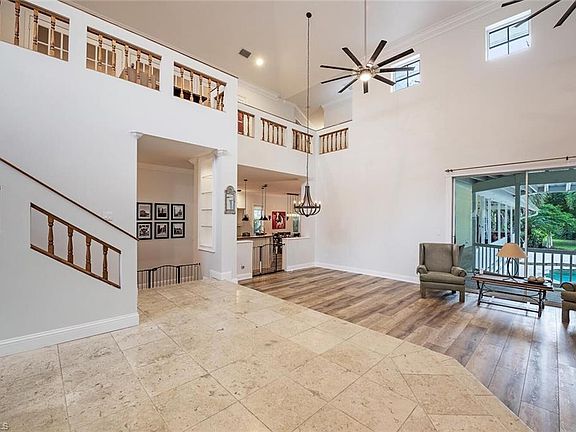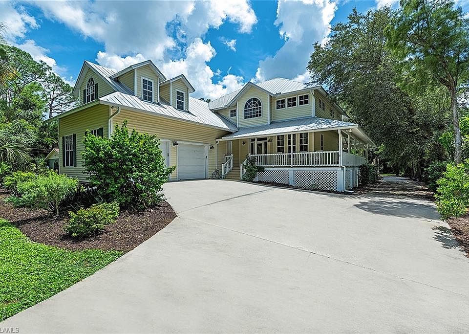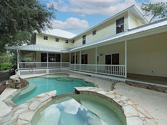 Fantastic opportunity in the highly desirable neighborhood of Logan Woods. This family compound is a dream estate boasting luxury amenities in a resort like rural setting in the heart of Naples. Featuring five bedrooms plus den, a mother-in-law suite with kitchen, and multiple flex spaces. Outdoors, a resort-style pool with sun shelf, spa, and cascading waterfalls basks in ideal southern exposure. Upon entering, you are greeted by 25-foot+ soaring ceilings with expansive views overlooking the pool and grounds. Two separate staircases and front entry points provide easy access to both the main house and the private mother-in-law suite, creating effortless multi-generational living. Entertaining is effortless with a generous deck, outdoor fireplaces, and a gracious wraparound covered porch. The home also features a whole-house reverse osmosis system, 2,000-gallon water tank, and a durable metal roof installed in 2017. Additional features include two hot water heaters, three air conditioning units, and full access to a fenced lot with a driveway and extra parking area at the rear of the home set on a large 1.14 acre parcel. Enjoy the peace and tranquility of living in a rural setting while enjoying the exceptional location just minutes from Naples’ dining, shopping, and Gulf beaches.