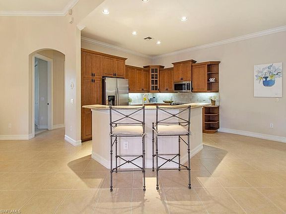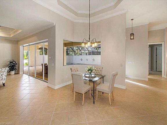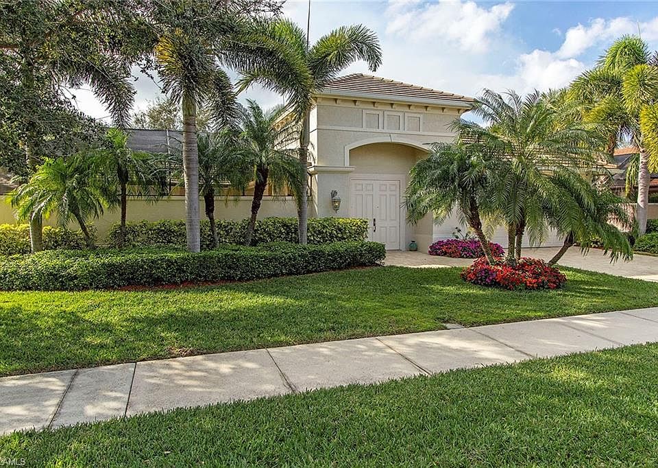 This home has it all! It shows like a model and lives like a private resort! This is a courtyard style home with single-floor convenience, 3 bedrooms, 2.5 baths, and a 2-car garage. It surrounds a private screened pool and lanai. Spacious, with 2,189 sq. ft. under air and 3,292 sq. ft. overall! Features such as solid wood cabinets, crown molding, tray ceilings, and meticulously maintained make it move-in ready. Formal living room and a family room that opens to the kitchen. Granite countertops accent a breakfast bar. The kitchen has ALL STAINLESS APPLIANCES too! Sliding patio doors open to a covered shady area poolside, great for entertaining and relaxing. The split floor plan is ideal. The luxurious master suite has two walk-in closets; master bath has dual vanity sinks, separate toilet room & large walk-in shower. A new flat tile roof in 2019, a new AC installed in 2018, new pool heater, and brand new washer & dryer. The location is in the heart of Naples, convenient to the beaches, shopping, and A1 rated schools. Banyan Woods is a gated community with low HOA fees, a fitness center, clubhouse & playground. Are you ready for your private resort?