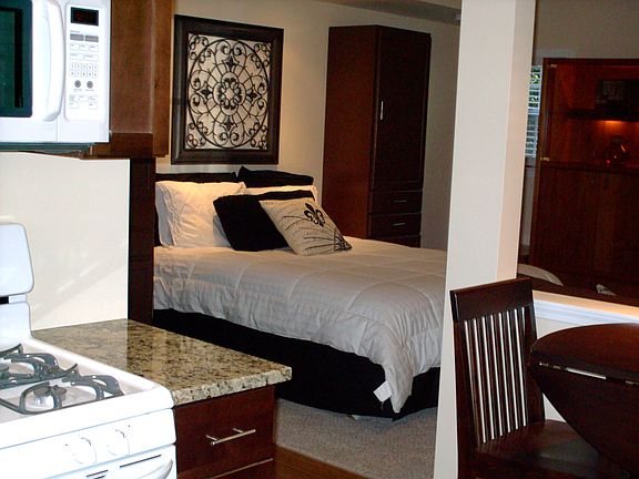 Ultimate Garage Apartment, no steps, off street parking for this studio apartment located in a residential neighborhood. High end finishes with granite tops in kitchen, full bath with tub/shower combo and a washer/dryer. Full kitchen with all appliances, great closet/storage space, queen bed, and all inclusive. Great shopping , close to Perimeter Mall, great restaurants and major hospitals. Perfect space for contract work, internships, medical professionals movie set or whatever brings you to Atlanta for a short time. Available for one person, no pets or smoking. Internet included, Non -smoking, No pets Can be short term or longer. Security deposit of $1200 required before move in. Rental application required.