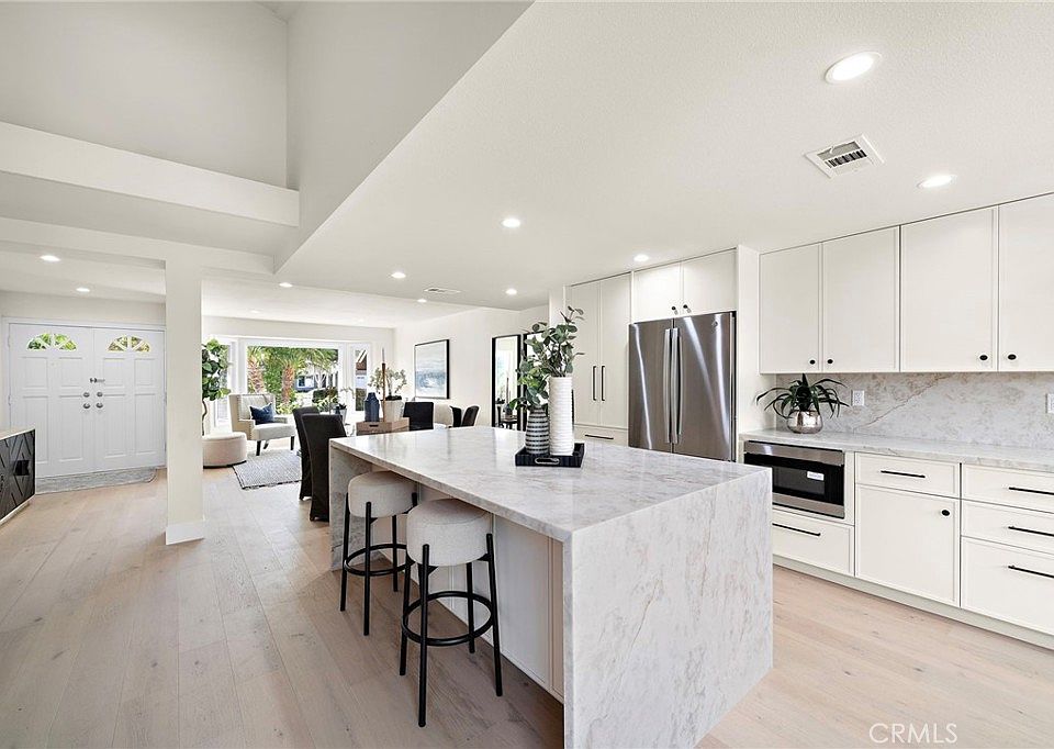 Tucked away on an inside cul-de-sac along a street of manicured homes, this bright and stunningly remodeled single-level residence combines privacy, charm, and modern comfort. Set far back from the street and backing to a peaceful greenbelt, this home offers a serene setting away from all busy traffic. Enjoy mint curb appeal with manicured landscaping, detailed hardscaping, and a newer roof. Step inside to discover an open, airy floor plan filled with natural light and stylish finishes throughout. The beautifully redone kitchen features new countertops, custom cabinetry, and new stainless-steel appliances — perfect for everyday living or entertaining. Every detail has been thoughtfully updated, from the fresh paint and new flooring to the upgraded windows that fill the home with abundant sunshine. French-style sliders open to a large backyard with a covered patio and play area, ideal for outdoor dining and relaxing. The spacious front yard and inviting front patio add to the home’s impressive curb appeal. This immaculate, move-in-ready home is set in one of Irvine’s most desirable neighborhoods, close to award-winning schools, parks, shopping, and dining. With no Mello Roos, a low tax rate, and no HOA dues, this home offers exceptional value and convenience.