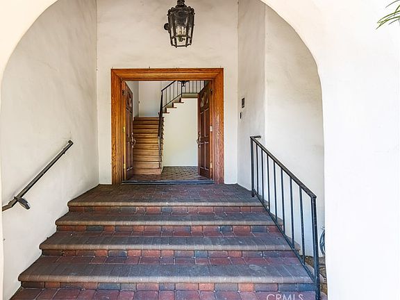 The front exterior boasts a circular paver driveway, mature landscaping, and wrought iron and wood gates with direct access to a 3-car garage and extended parking and arched entry welcomes you into the home’s elegant interior through solid wood double front entry doors. RV access through a back road to the property. A classic concrete and mortar tile roof and Venetian plaster exterior.