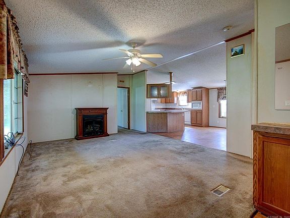 NEW ROOF to be installed prior to closing. Charming manufactured home and tiny home/shop is situated on a spacious 1-acre lot in a fantastic location! This property features 3 bedrooms and 2 baths, offering plenty of space for your family. While it could use a little TLC with fresh paint and new flooring, it has great potential to become your dream home. The property is sold as is. In addition to the main home, you'll find a nice shop that could double as a tiny home, a shed for extra storage, and a storm shelter for peace of mind. The cement driveway leads to a convenient carport, ensuring plenty of parking space. Plus, the property is equipped with a whole house generator, ensuring you're never left in the dark. The neighborhood is friendly and welcoming, making this a perfect spot to settle down.
