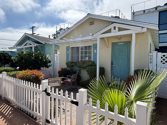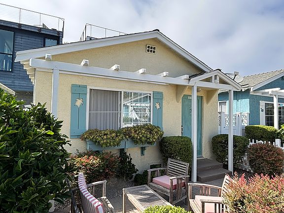 1 Block to the Beach!! This is an adorable SMALL beach cottage with its own private front yard, landscaped with a picket fence, pavers, succulents and a fruit tree. Cute remodeled cottage, nice and bright with lots of windows. Hardwood flooring in the living room and bedroom, vinyl plank kitchen floors. Small but super cute, in the back of a smaller complex. The complex has pavers, succulent fountain, picnic table and BBQ, even a dog wash! Live the beach lifestyle! 1 block to the beach, close to restaurants, bars, shopping, parks, easy free access.