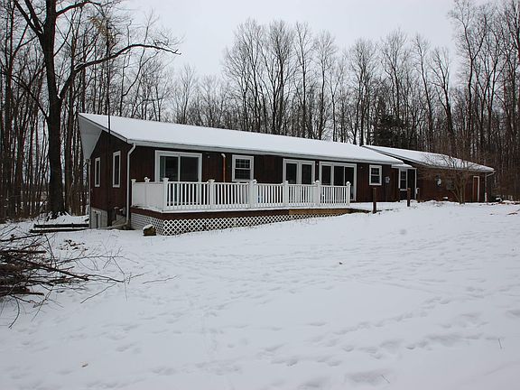 A beautiful setting and a meticulously maintained 3 bedroom 2 bath home on 20 wooded acres! Enter into the large foyer and enjoy the open living space of the home with sliding glass doors leading to the back yard. Kitchen has plenty of work room, stainless steel appliances and plenty of storage; plus a breakfast bar for seating. Gorgeous wood floors in the kitchen, dining and living area! Sit back and relax on the back deck and watch the wildlife. Featuring a full unfinished walk out basement, blacktop drive and attached garage, this home has plenty of storage and room to grow. Home has many updates including a new roof in 2016, central air, new natural gas furnace, hot water heater and well pump.