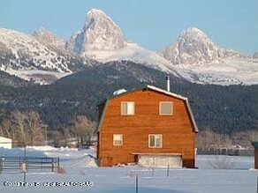 Beautiful hand crafted home 980 sq ft home in the quiet subdivision of Teton Rancheros. Unbelievable stunning views. Large open floor plan with 1 bedroom and one bathroom downstairs and a bedroom and office in the loft. Floor radiant heat for those chilly winter mornings. Storage building and a very functional shop with electricity. Beautifully landscaped yard with an outside sitting area and fire pit on 2 acres. Easy access to both highway 33 and Stateline road which gets you to Grand Targhee in minutes. Quaint neighborhood with great neighbors along South Leigh Creek.