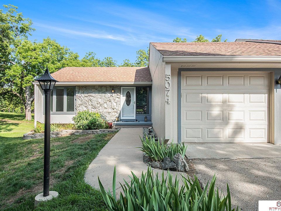 Fantastic Ranch Townhome in Millard backing to Walnut Grove Park! Amazing views w/ no rear neighbors from the covered Deck overlooking the Park. Main floor laundry. Open floor plan, Kitchen has tons of cabinet space & all appliances stay. Living room features hardwood floors, vaulted ceilings & brick fireplace. Both bedrooms have all new carpet. Main floor baths have been updated w/ new tile & vanities. Finished lower level with Rec room, 3/4 Bath & tons of storage. HOA includes access to community Pool. Great SW Omaha location- Millard school district, close to lots of shopping, restaurants! AMA