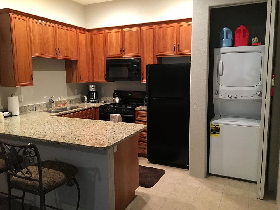 There are 2 flat screen TV's, Queen size sleeper sofa in the living room and a king size bed with a walk in closet and easy access to the full bathroom with a tub/shower combo. Additional features include in-unit laundry with a stackable wash/dryer, and full access to the community poos and spas,