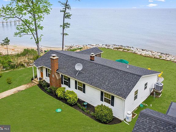 Beautiful WATERFRONT rancher on the Chesapeake Bay boasting stunning views in almost every room. Completely move in ready just in time for summer vacation with all furnishings included (furniture, linens, etc., excluding artwork). Casual coastal style emanates throughout with a bright and easy flowing floor plan embellished by a neutral color palette and bathed in sunlight. The gracious floor plan provides seamless flow from the kitchen, living room, and dining room perfect for entertaining family and friends! Living room features a lovely brick profile wood burning fireplace and hardwood floors. Prepare delectable dinners in the kitchen appointed with a center island, and easy access to the screened in porch. Adjacent to the kitchen is the expansive dining room with space for a separate seating area with beautiful views of the bay and Point No Point Lighthouse from the picture window. Relax and unwind in the primary bedroom highlighted with luxury vinyl plank flooring, ceiling fan, and en-suite bath. Two additional bedrooms and a full bath complete the interior of this lovely home. Located in a private setting with rip rap protection with adjoining sandy beaches, perfect for a weekend getaway or full time enjoyment! Backyard to be leveled and seeded for grass. Updates: Sub terrain drain, sump pump drainage, patio fire pit, new paint, dishwasher, disposal, new LVP flooring in bedrooms and hallway, light fixtures, landscaping, insulated pipes under house, new termite repellent, 2000 gallon septic tank, new keyless entry. Simply perfect!