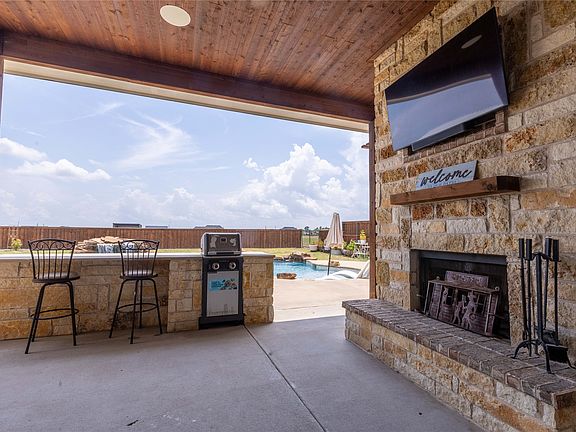 Stone fireplaceFive flat usable acresPrivate poolOversized shopBuilt-in grillOutdoor living spaceLarge dining area