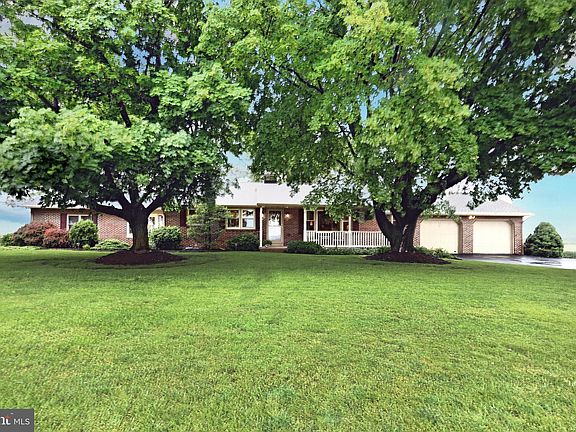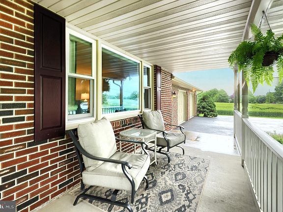 Spacious and beautifully maintained 3 BR, 2/2 BA ranch home set in a peaceful rural setting with stunning farmland views. Enjoy open-concept living in the main area, featuring a fully updated kitchen (2018) with Cambria quartz countertops, Waypoint custom cabinetry, pantry, and stainless steel appliances. Gorgeous Bamboo and Oak hardwood flooring flows throughout. The sunroom offers year-round enjoyment with radiant heated floors and scenic views. The primary suite includes a ensuite with jetted garden tub & walk-in closet. Additional highlights include first-floor laundry and mudroom, a partially finished basement with pellet stove insert and fireplace, and a floored attic with separate stair access for extra storage. Outside, relax on the stamped concrete patio (20'x26') under a Sunsetter awning or enjoy the covered front porch surrounded by mature trees and well-maintained landscaping. Oversized two-car attached garage, multiple storage sheds (12'x16'; 8'x12' & 4'x8'), and numerous recent upgrades: new roof (2024), central A/C heat pump (2022), asphalt driveway (2024), and replacement windows throughout. Move-in ready with comfort, functionality, and serene country charm! You don't want to miss this one! Schedule your showing today!