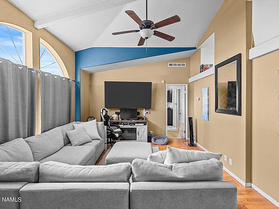 Beautifully maintained 3-bedroom, 2-bath home offering 1,680 sq ft of comfortable living. This spacious home features two inviting living rooms, ideal for entertaining or relaxing evenings in. The open kitchen provides abundant cabinetry and counter space, seamlessly connecting to the dining and living areas for effortless flow. The private primary suite includes a walk-in closet and en suite bath, while two additional bedrooms offer flexibility for guests, work, or hobbies. Enjoy beautiful Mount Elden views from the fully fenced and landscaped yard with plenty of room to unwind or garden. Ample parking and an excellent location near trails, shopping, and schools. Land lease: 880/month.