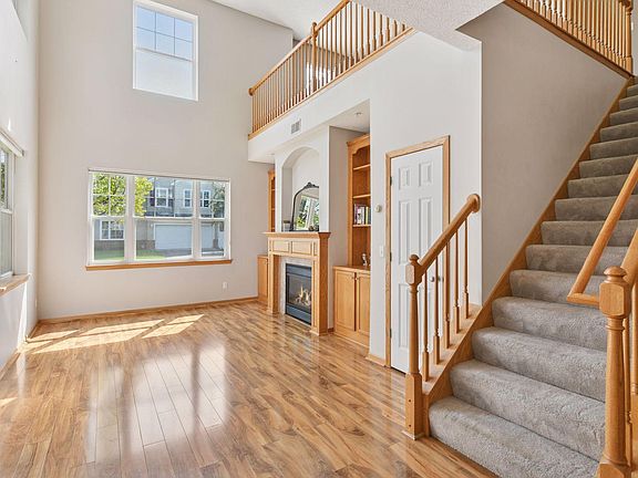 End-unit, 2 Bed plus spacious Loft!! Beautifully maintained, spacious townhome in Harvest Hills! Gorgeous LVT flooring, and soaring ceilings with open banister to loft. Beautiful blend of natural woodwork and crisp white paneled doors. Spacious living room offers a custom-built oak fireplace surround designed to blend with the built-in book-cases. Modern designed kitchen with upgraded Stainless Steel appliances, a stylish subway tile backsplash, and clean, neutral finishes throughout. Upstairs, you’ll find two spacious bedrooms plus an open loft that offers flexible options for a home office, play area, or additional family room. Primary suite with unique vaulted ceilings, spacious walk-in closet, and walk-through to full upper bathroom with double sink vanity, separate shower and deep soaking tub. A convenient upper-level laundry room adds ease to busy lifestyles. The entire Townhome is flooded with natural light from abundant windows; the home also includes a private walkout patio—perfect for outdoor enjoyment. Meticulously maintained and truly move-in ready, this home offers comfort and style at every turn. All of this in a prime location, just minutes from Wayzata High School, trails, parks, shopping, and with quick access to Highway 55 and 494. Don’t miss your chance to own this turnkey townhome in one of Plymouth’s most sought-after neighborhoods.