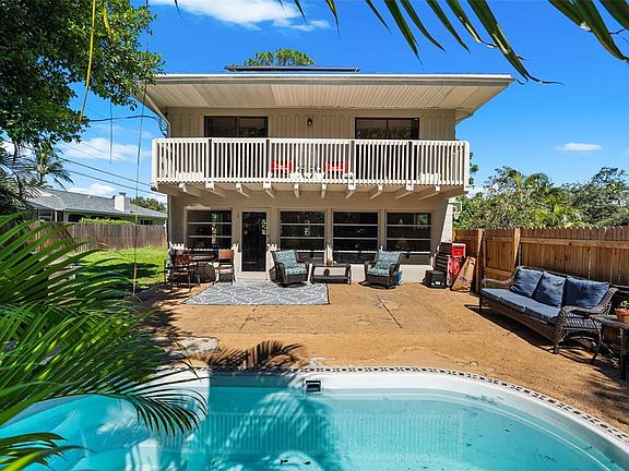 Welcome to 5075 Lemon Bay Drive, a private oasis in the heart of South Venice where old Florida charm meets modern updates on over half an acre of lush, unrestricted land. This beautifully refreshed 3-bedroom, 1.5-bath pool home offers approximately 1,500 square feet of light-filled living space. Step inside to an expansive great room with a dramatic wall of windows that frame the backyard and pool, inviting the outdoors in. A stone wood-burning fireplace anchors the space, creating a warm, welcoming centerpiece. The eat-in kitchen has been tastefully updated with stainless steel appliances, ample cabinetry, and generous prep space. Upstairs, two of the bedrooms open to a spacious balcony overlooking the backyard and pool. The home has been upgraded with a new roof, air conditioning system, flooring, and appliances. Situated on over half an acre lot that offers exceptional privacy and flexibility — whether you dream of gardening, parking your RV or boat, or even adding a guest house or workshop, there are no HOA restrictions to limit your imagination. As a resident of South Venice, you also have the option to join the South Venice Civic Association, granting access to the community boat ramp and the exclusive South Venice Beach Ferry, offering a truly unique coastal lifestyle. Just minutes from beaches, dining, shopping, and historic Downtown Venice, this home combines convenience, freedom, and charm in one of Sarasota County’s most desirable areas. Come experience the lifestyle that 5075 Lemon Bay Drive has to offer — and make it yours before someone else does.