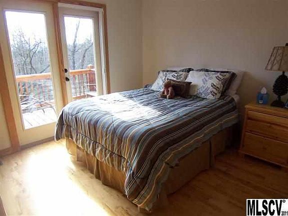 B'ful mountain view from deck. Complete privacy. Cute mountain cottage on 10 acres in gated community of Highland Meadows. Great room with open vaulted ceiling and wood burning FP. Atrium doors to spacious deck with outdoor woodburning FP. Gorgeous sunsets from deck. Also atrium door from 1st floor bedroom to deck. Spacious eat-in kitchen with lots of granite counter space. 1st & 2nd floors have b'ful maple hardwood floors. Upstairs suite has luxury master with jetted tub and separate shower plus walk-in closet. LL has bedroom & bath, office and large recreation room. Cute mini barn outbldg is 16x10 with lean-to for tractor etc. Relax on the front porch trimmed in poplar bark siding. Plenty of wildlife. If you prefer animals for neighbors, this is the home for you! Lots of turkey, deer. Enjoy nature!
