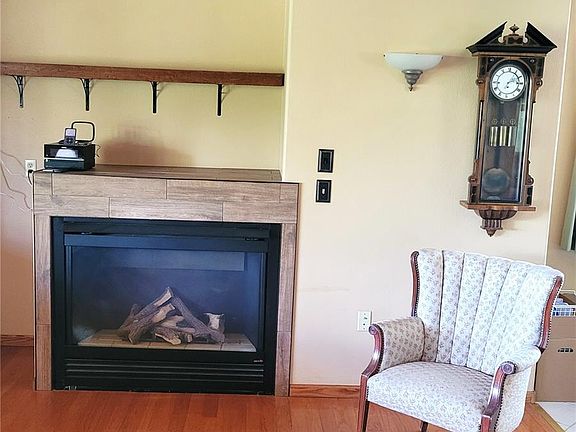log fireplace for those cold winter nights. There is a large covered front deck with removable plastic screens that provide