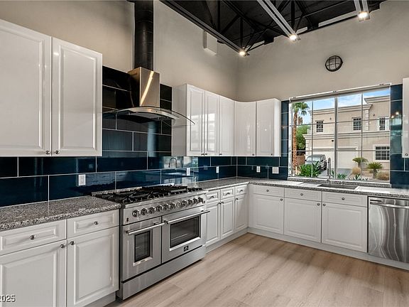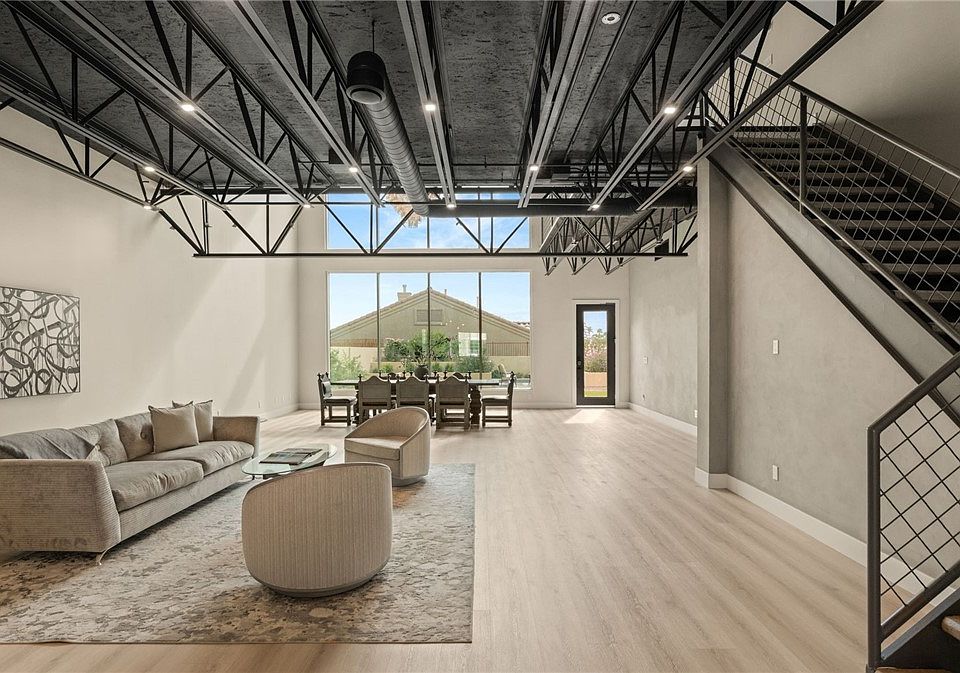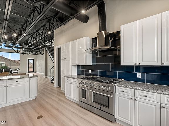 Experience elevated living in this one-of-a-kind industrial style home, showcasing panoramic views of the iconic Las Vegas Strip and Downtown perfect for enjoying New Year’s Eve and 4th of July fireworks spectaculars. Featuring soaring ceilings and dramatic floor-to-ceiling windows, the open-concept floor plan is ideal for entertaining, seamlessly blending bold architectural elements with modern comfort. Recently renovated, no detail has been overlooked: custom lighting enhances every space, an additional half-bath has been added to the third room downstairs, and all new appliances make this home truly move-in ready. Opportunities like this are rare, don’t miss your chance to own this loft inspired masterpiece with unforgettable views!!!!