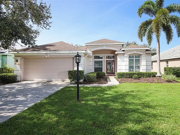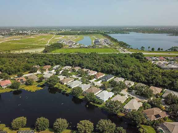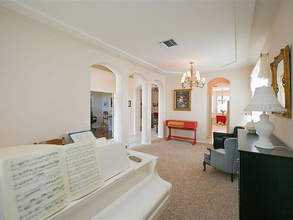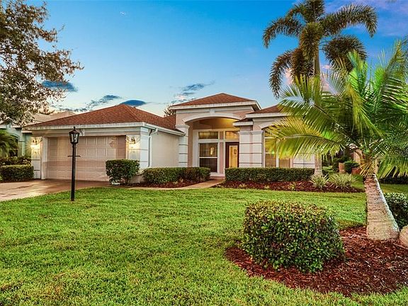 Soaring ceilings accentuate the airiness of this waterfront home, in a great community with natural gas, playground, community pool! Enjoy long water views every day. Is this house 3 bedrooms and a den? Or 4 bedrooms? Both are true! The 4th bedroom is currently being used as an artist's studio. To the front of the house are a "formal" dining and living room (currently being used as a music room), with a separate family room and open plan kitchen. A butler's pantry, with storage and dry bar, separate the kitchen from the front rooms. There is also room for a wine refrigerator! The kitchen has TONS of maple cabinets for storage and plenty of counter space for meal preparation and informal buffets; it is also pre-plumbed for a gas range. There is terrific flow throughout the house and out onto the spacious lanai, with such a lovely, broad lake view. The master suite naturally faces such an enchanting view, and has a large, accommodating bathroom and walk in closet. The other two bedrooms are back, with their own shared bathroom with two sinks in the vanity. The indoor laundry room leads to the garage, with plenty of room for your vehicles. Lounge on the extended lanai and enjoy the water views; take advantage of the gas plumbing for a new BBQ grill or outdoor kitchen. Come home to the popular community of Carlyle at Palm Aire, featuring natural gas (HVAC and hot water heater, with hookup for a gas range) and the Carlyle Commons community amenities. The Carlyle Commons community has a community pool, pickleball and tennis courts, basketball court and playground. Palm Aire Country Club membership is optional, and features two 18 hole championship golf courses, 8 Har-Tru lighted tennis courts, clubhouse, fitness center, and Olympic swimming pool. Located in the University Parkway corridor, close to Lakewood Ranch, eight miles to downtown Sarasota's cultural amenities, upscale shopping, and fine restaurants. Convenient to SRQ airport.