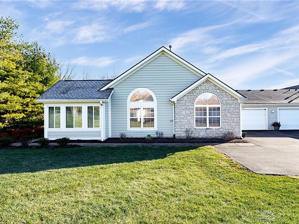 Welcome home to this fabulous open-concept, two-bedroom, two-full-bath, one-level condo in the highly desirable Hunters Glen at Northmont, offering effortless private entrance, no rear neighbors, quiet living and true move-in readiness. A versatile third room with cathedral ceilings makes an ideal guest bedroom or stunning home office. The inviting primary suite features a gorgeous walk-in closet, excellent storage, and a spacious double-sink vanity. The beautifully remodeled kitchen, completed in 2023, boasts leathered granite countertops and newer appliances, with a convenient laundry and mudroom just off the kitchen leading to the generous two-car garage. Updates include LVP flooring in 2022, all new ceiling fans, a new furnace in 2025, and a new roof in 2025, giving you peace of mind for years to come. The association covers yard care, landscaping, snow removal, water and sewer, plus access to a clubhouse, pool, walking trails, and an exercise room. This exceptional condo is ready for its next owner, and opportunities like this in Hunters Glen do not come often. Don’t miss it!