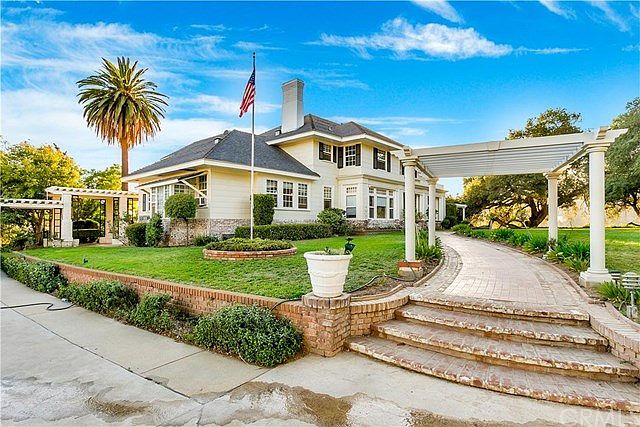 RARE OPPORTUNITY TO LEASE ONE OF LA VERNE'S MOST HISTORIC HOMES. A gated, private estate with the main home and the detached four car garage being offered for lease at a fantastic price. This estate offers over an acre and a half of private yard including a driveway leading into the property, huge front yard with mature oak trees, grass, brick walkway and mountain views. A covered front porch welcomes to the front entry which offers custom lighting and a glass front door. A formal entry opens to a formal living room with fireplace, space for a grand piano and offers cathedral ceilings. There is a game room with a built-in wet bar offering great views of the backyard. A separated family room overlooks the front yard. There is a formal dining room connected to a butler's pantry and then to a kitchen which offers a full-sized refrigerator & freezer, breakfast nook w/cabinetry and a view of the front yard & mountains. Upstairs master bedroom w/wood floors, two closets & a balcony with breathtaking views. There are a few other upstairs bedrooms upstairs w/ensuite bathrooms & dual staircases. The backyard offers a pool and spa, covered patio w/fireplace, built-in BBQ w/bar top seating, panoramic views of the mountains & city lights, fire pits & a private garden