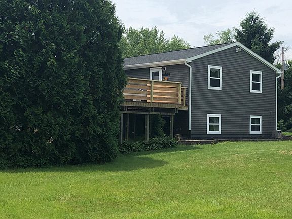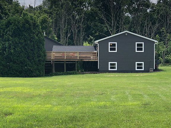 PRICE REDUCED!! Beautiful RAISED RANCH home on 2 acres! The square footage on Auditor's site is wrong. Previous appraisal puts the square footage at 1668 sq ft. Kitchen with center island is open to the living room, currently used as a dining area. Spacious master with an updated full bath, hall bath updated as well. New water softener, new finishes in the lower level, including custom electric fireplace and built-ins, new HVAC system, new siding whole house, new roof, large deck off main entrance, 32'X40' metal outbuilding with loft area, 200 AMP electric, woodburning stove, 2 car garage door with opener and side van door. Plenty of space to roam and play, or to enjoy quiet evenings on the deck. This is a great property just a couple of minutes from the high school and middle school!