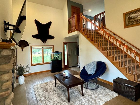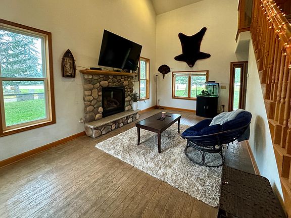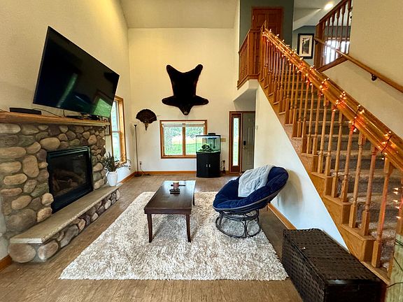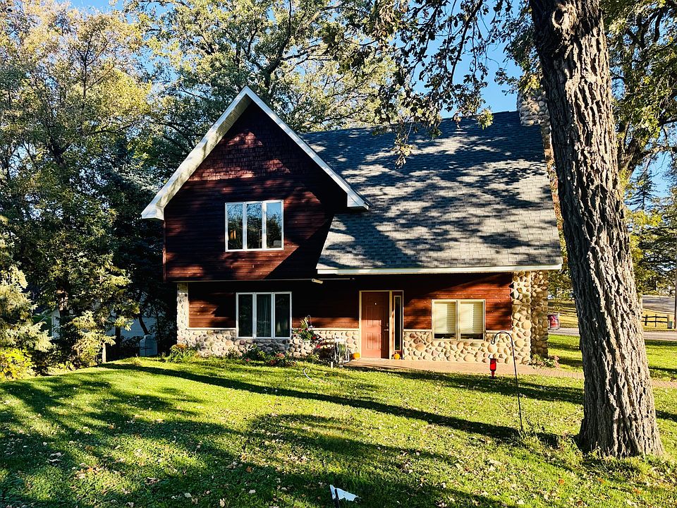 Come and see this charming 2-bedroom, 3-bathroom two-story cedar-sided home in the lakes area. The warm and inviting living room features a stunning stone fireplace and soaring ceilings, with a loft-style family room that overlooks the space below. The kitchen offers solid natural hickory cabinetry, a center island with dining space, and stainless steel appliances. Both bedrooms include spacious walk-in closets for ample storage. Enjoy the comfort of in-floor heating throughout, along with an oversized, heated and insulated two-stall garage complete with a convenient half bath, work space and storage. Perfectly situated between George Lake and Nest Lake, which seasonally will allow for lake views, this home offers a serene setting with a touch of charm and character.