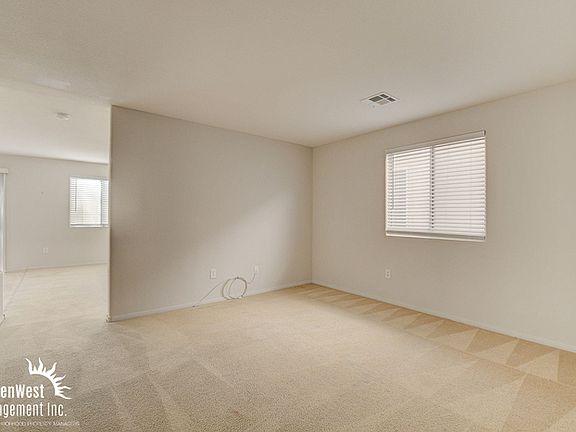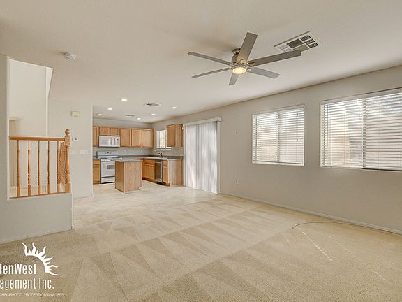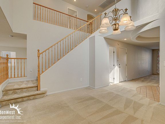 Charming 4Bdm 3Ba Home with Modern Features located in SW Las Vegas. The living room in this home offers a welcoming and spacious area with a light, neutral color scheme. The carpeted floors create a soft, cozy atmosphere, while the high ceilings and chandelier light fixture add a touch of elegance. Large windows allow plenty of natural light to flood the room, giving it a bright and airy feel. The home features modern appliances, including a refrigerator, oven/stove, microwave, and dishwasher, all designed to make daily living more comfortable and efficient. Step inside and make your way upstairs to the primary bedroom, which offers a relaxing retreat with a walk-in shower, garden tub, and two separate vanities for convenience. This property boasts an attached garage, central AC, and includes washer & dryer for added convenience. . The home also features a fenced yard. This home offers the perfect balance of functionality and comfort. Tenant pays all utilities. This property allows self guided viewing without an appointment. Contact for details.