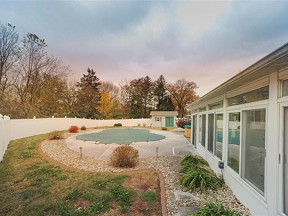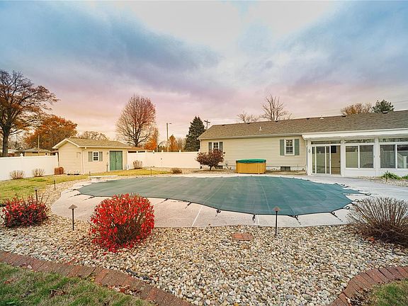 If you're looking to customize a home, this property is just for you! Beautifully landscaped front and back, this two-bedroom ranch has two full newly renovated full bathrooms. An addition to this home includes oversized 2-car garage and sunroom. It's cold now, but envision sunbathing on the pool deck and swimming in a heated pool just a few months from now. Pool shed includes everything to get the pool open this summer. A Hot tub is able to provide year-round use once the heater is repaired (t has been unused for a while). Enjoy the easy maintenance of hardwood floors in living room and bedrooms. Good sized kitchen allows for a large island and/or eat in kitchen. While it needs updating, buyer is able to choose the cabinets, appliances and flooring. Adding even more space, the full basement is made even larger with the basement addition. New roof 2024. Additional Rooms: Sun Room