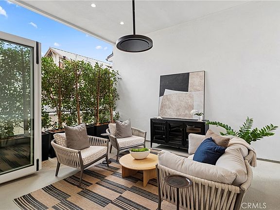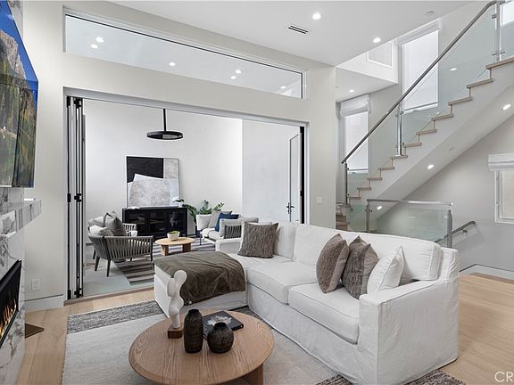 Located on the ocean side of PCH, this residence was built with exceptional craftsmanship and refined design, offering two bedrooms, a spacious office, and two and a half bathrooms. The main level features an open-concept great room with soaring ceilings, an impressive glass staircase, and a sleek Porcelanosa stone fireplace. Tall bi-fold doors open to a covered loggia with a built-in Bromic heater, creating seamless indoor-outdoor living. The gourmet kitchen is equipped with custom handle-free cabinetry, Neolith stone island and countertops, and Wolf and Sub-Zero appliances, including a 6-burner range with griddle and dual ovens. A custom bar accents the dining area. The primary suite, located on the main level, includes a large walk-in closet and a spa-inspired bath with double vanities, a soaking tub, walk-in shower, a private commode, and designer finishes. Additional highlights include beautiful wood flooring, flush baseboards, programmable LED lighting, and multiple outdoor living spaces. The upper level offers a secondary ensuite bedroom, while the rooftop deck provides panoramic sunrise-to-sunset views, refreshing ocean breezes, and sweeping views of the city, Pelican Hill, and the ocean. Situated on desirable Acacia Avenue, one of the few streets in Corona del Mar with underground utilities, this home epitomizes modern luxury and coastal sophistication.