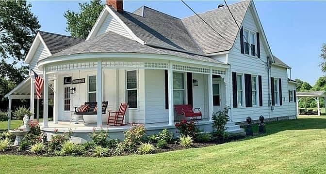 Welcome to this Charming 1904 restoration- Centrally located to Cincinnati, Louisville and Lexington. 2 sets of original pocket doors and woodwork throughout, high ceilings, gorgeous lighting throughout. Granite countertops, newer appliances, huge yard, Unique round historic porch design with trellis woodwork. 2 car oversized garage, carport, detached covered concrete patio. Lots of attic storage and large room sizes!