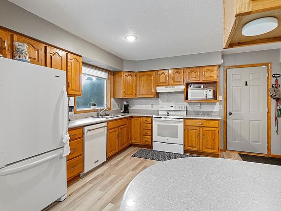 A rare opportunity due to relocation! This beautifully maintained 4-bedroom, 2-bath home offers comfort, style, and functionality. The spacious kitchen boasts Silestone countertops, a breakfast bar, and ample cabinetry for effortless organization. The open-concept main floor is perfect for entertaining, flowing seamlessly into a generous living area. Step from the dining room onto a two-tier deck overlooking the serene backyard—ideal for relaxing or hosting gatherings. The oversized 2-car garage provides extra storage for tools and equipment. Nestled in a quiet neighborhood, this home is just minutes from a golf course and scenic walking paths. Don’t miss this fantastic opportunity!